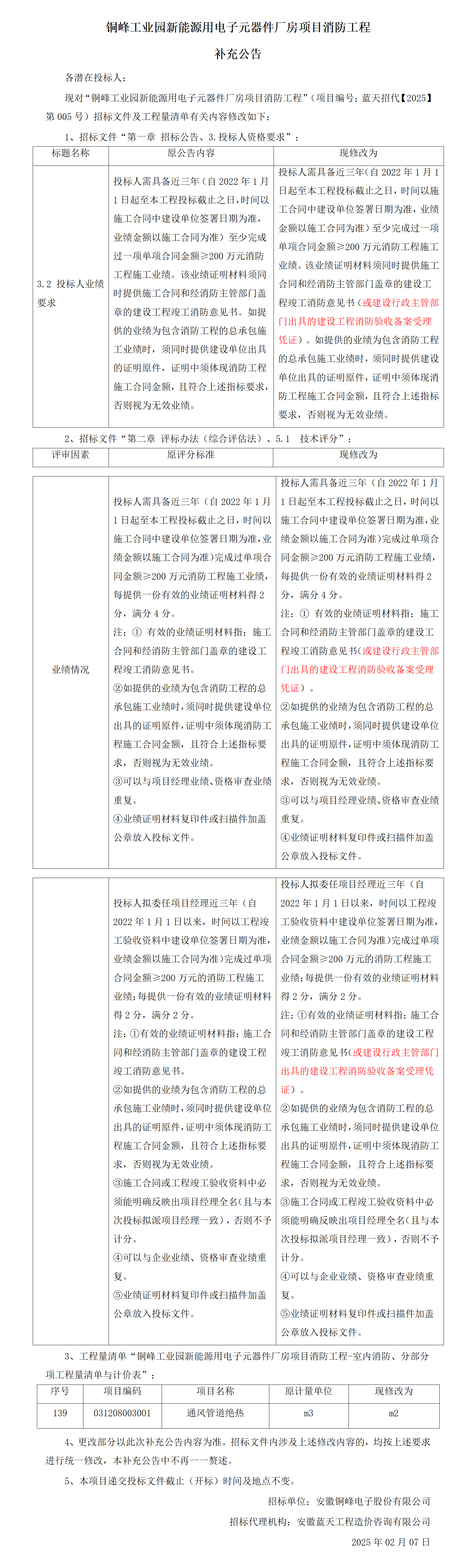 铜峰工业园新能源用电子元器件厂房项目消防工程补充公告