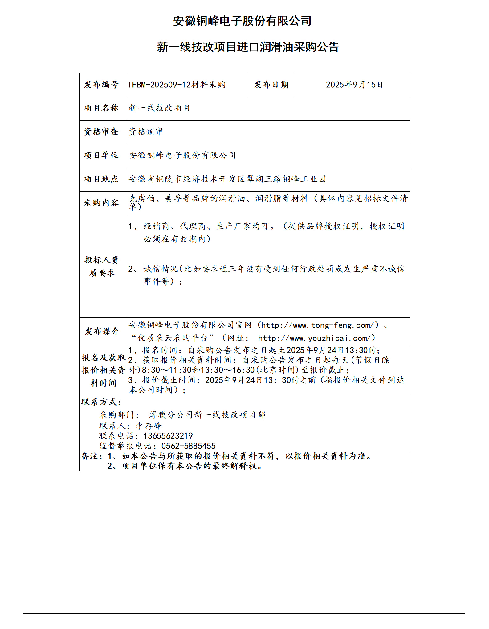 沙巴体育博彩 (新一线技改项目进口润滑油采购公告)_01