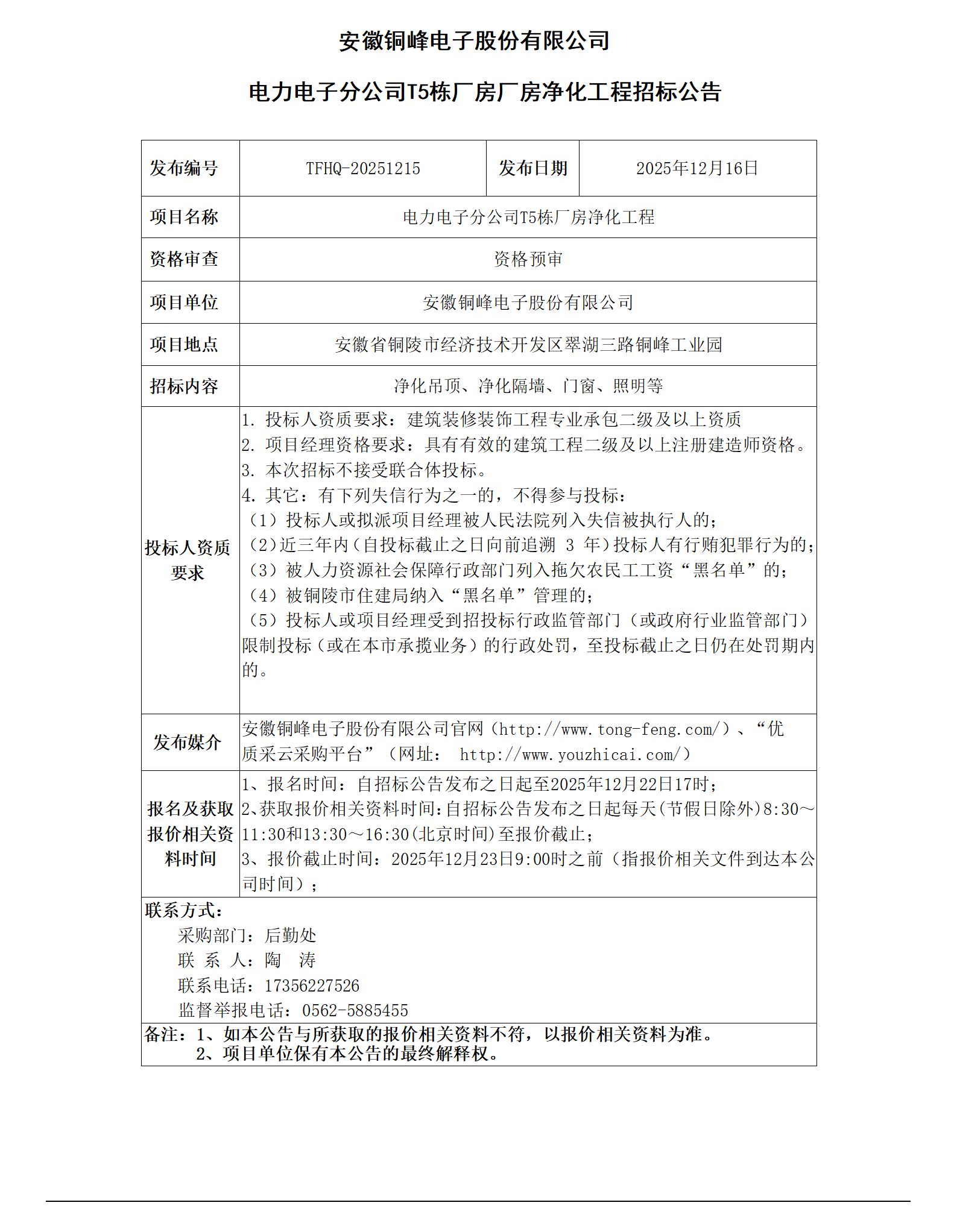 01沙巴体育 (电力电子分公司T5栋厂房净化工程 招标公告)_01