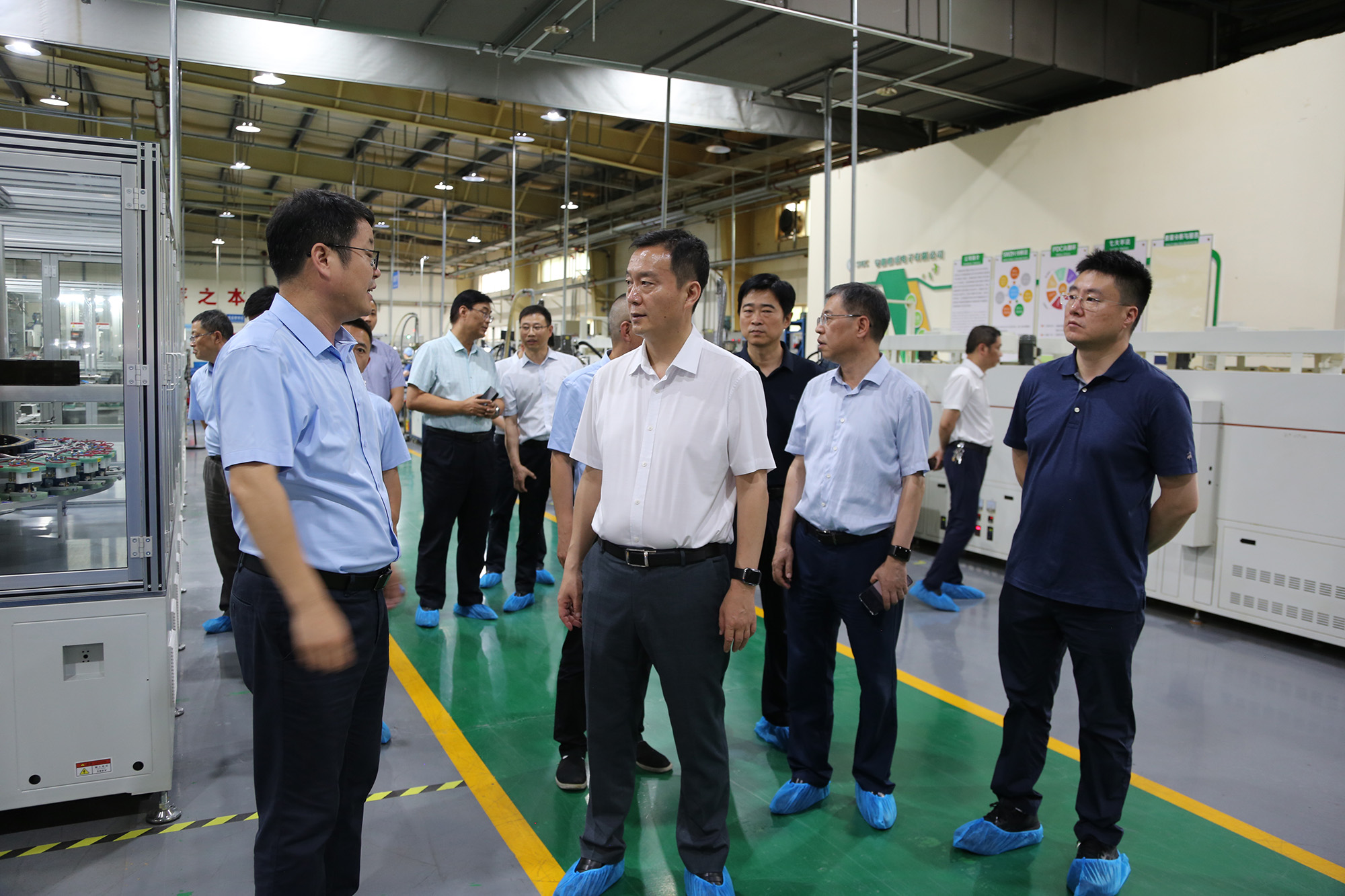 孔涛一行深入峰成公司新能源汽车用电容器生产车间,认真了解生产流程、产品性能、市场应用等情况,并听取企业负责人关于科技创新、产学研合作、项目建设、发展规划等情况的汇报。